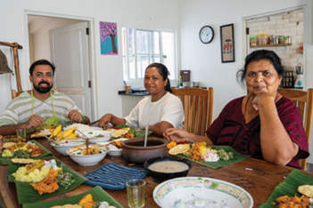 Treten Sie ein in ein traditionelles hinduistisches Familienhaus in Kandy und lernen Sie die srilankische Tamilenkultur aus erster Hand von Mutter und Sohn Arun und Indra kennen. Bereiten Sie Gerichte wie String Hoppers, Dhal Curry und Kokosnuss-Sambol zu, unterhalten Sie sich dabei und lernen Sie die Kultur, Traditionen und die Liebe zum Essen des jeweils anderen kennen.
