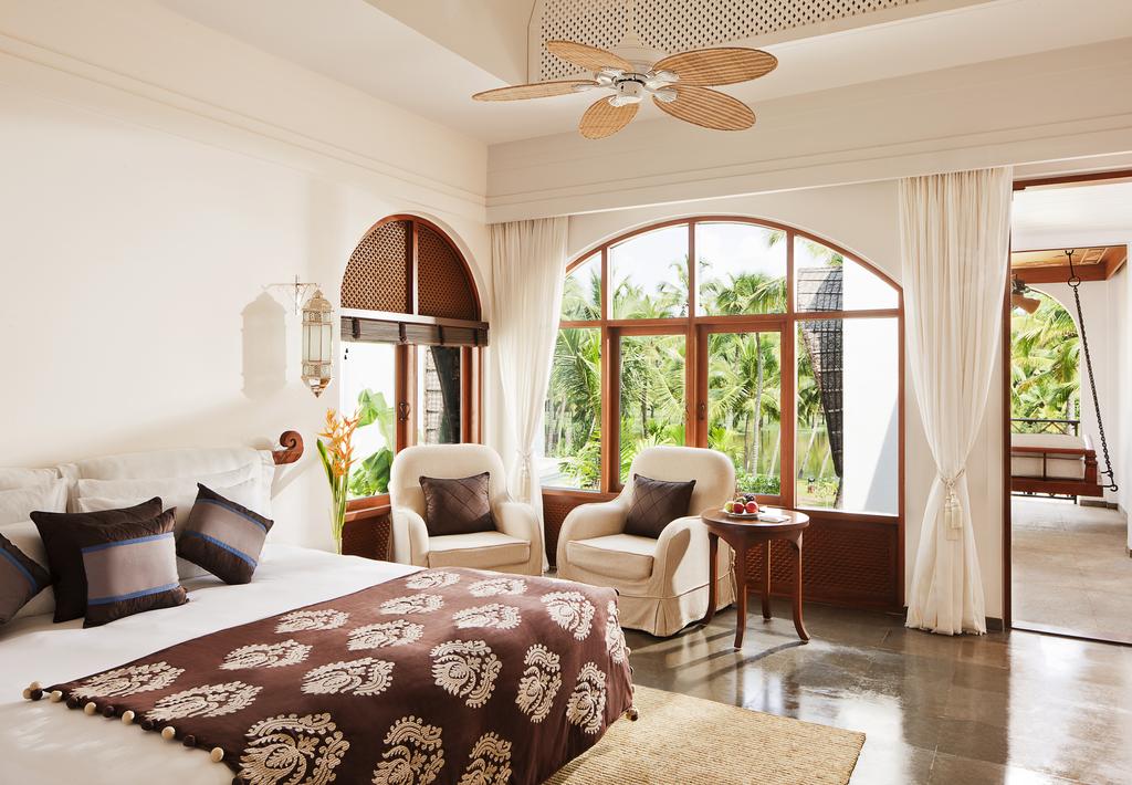 Die 71 luxuriösen Villen und Zimmer sind private Refugien mitten in tropischer Vegetation. Sie verfügen alle über teils halb offene Bäder, Bademantel, Klimaanlage, TV, Telefon, elektronischer Safe und Tee/Kaffeekocher. Ein Schaukelbett auf dem Balkon oder im privaten Garten gehört ebenfalls zur Ausstattung.