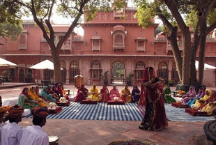 Am Morgen werden Sie in einem Jeep von Ihrem Hotel abgeholt. Nach einer kurzen Fahrt erreichen Sie den Treffpunkt wo "Ihr" Kamel bereits auf Sie wartet. Sie reiten etwa zwei Stunden lang gemächlich durch die Sanddünen der rajasthanischen Wüste Thar. Sie passieren kleine Dörfer mit typischen Lehmhütten und erhalten Einblick in das karge Leben der Bewohner. Wasser ist hier immer noch ein kostbares Gut. Eine rajasthanische Familie heisst Sie für eine Kaffee- oder Teepause willkommen, bevor Ihr Koch Ihnen ein einfaches vegetarisches Mittagessen bereitet. Am Nachmittag folgen weitere zwei Stunden auf Ihren Wüstenschiffen, bevor Sie sich von Ihrem Kamel verabschieden und mit dem Jeep zurück zu Ihrem Hotel gebracht werden.
