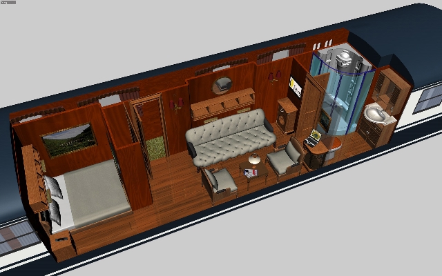 Im Inneren wird den Bahnreisenden wiederum ein opulentes Interieur geboten. Insgesamt 14 holzverkleidete Suiten für zwei Personen, die rund zwölf Quadratmeter gross sind, bietet der Transcantábrico. Das elegante Mobiliar erinnert an vergangene Zeiten. Ein Badezimmer mit Dampfdusche, die zur Sauna umfunktioniert werden kann und einem Whirlpool, die Stereoanlage sowie zwei Fernseher sind bei den rollenden Luxussuiten inklusive. Doch in Anbetracht der prächtigen Route, die der elegante Zug zurücklegt, ist das Unterhaltungsprogramm nahezu überflüssig.